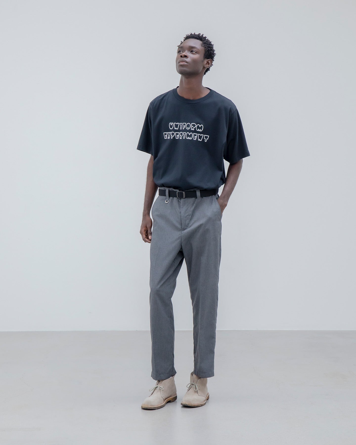 今季のシーズナルグラフィックであるKOICHI YAIRIのドローイングによるUNIFORM EXPERIMENTロゴを、胸元にシンプルかつ象徴的に配置したクルーネックTシャツ。背面首元にも同氏デザインによるサークルUEロゴを配しました。
