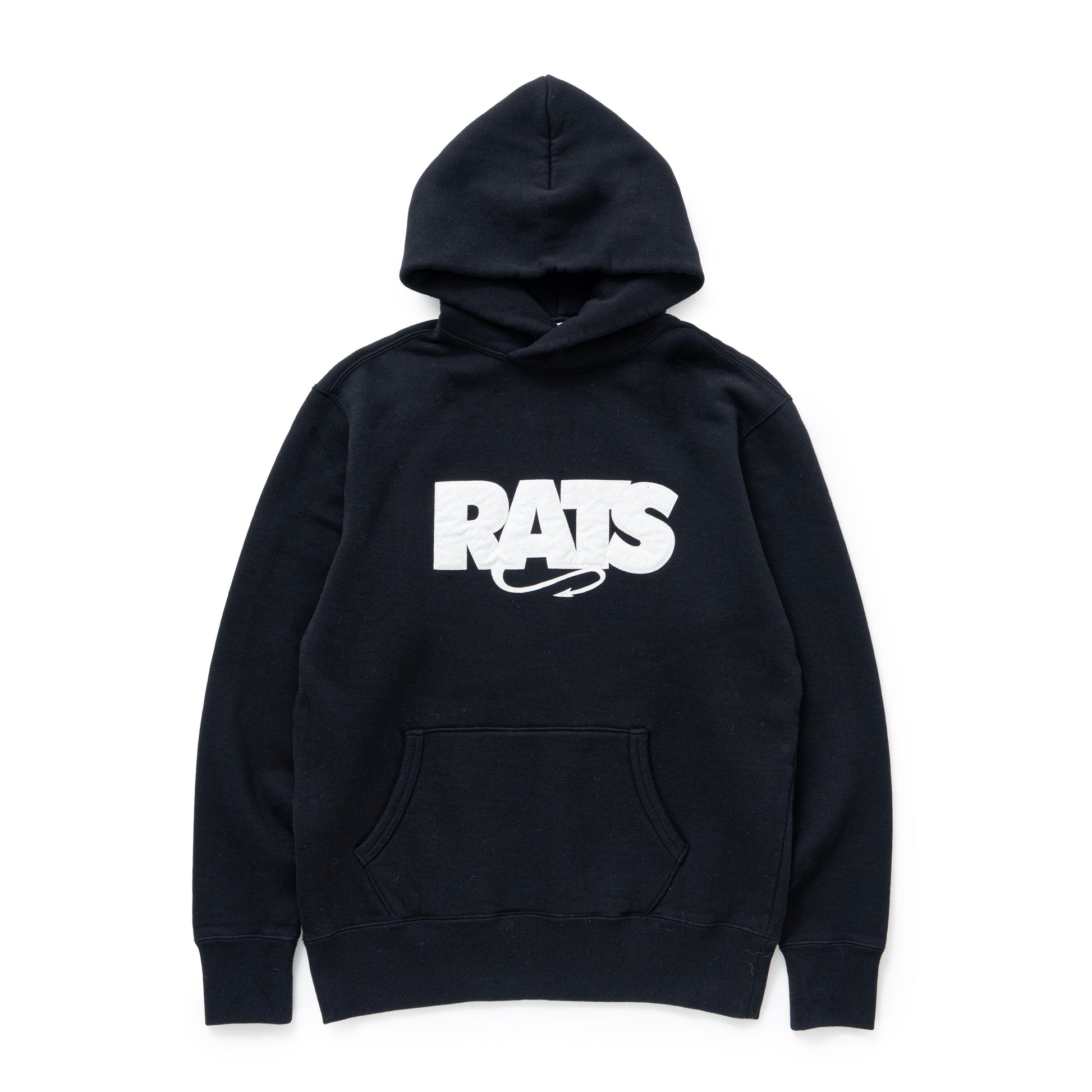 フロントにボックス型RATSロゴのフェルトパッチを配置、フェルト縁は千鳥刺繍で表現したデザイン。