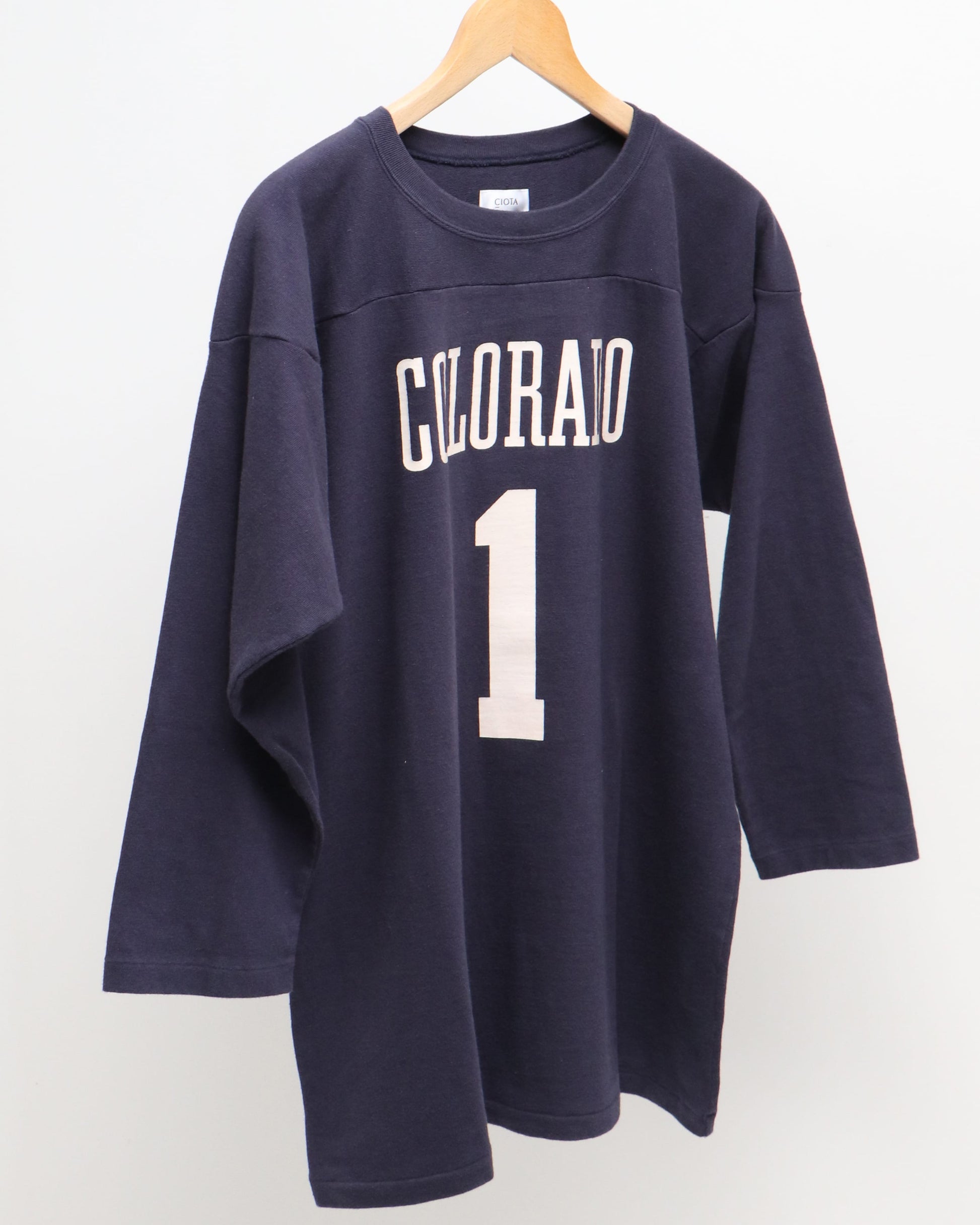 スビンコットン 12/-天竺 フットボール七分袖Tシャツ NAVY