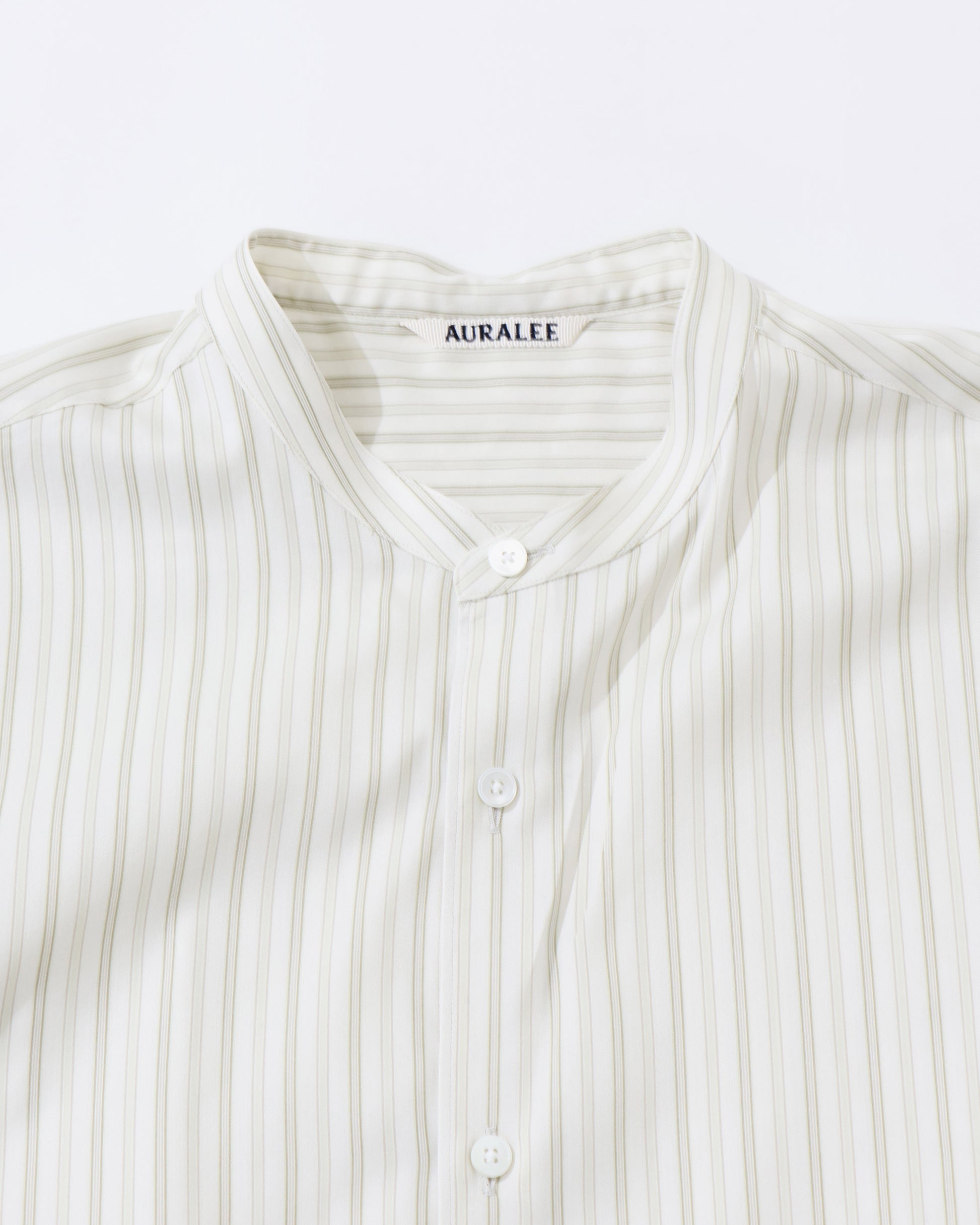 COTTON SILK STRIPE STAND COLLAR SHIRT IVORY STRIPE