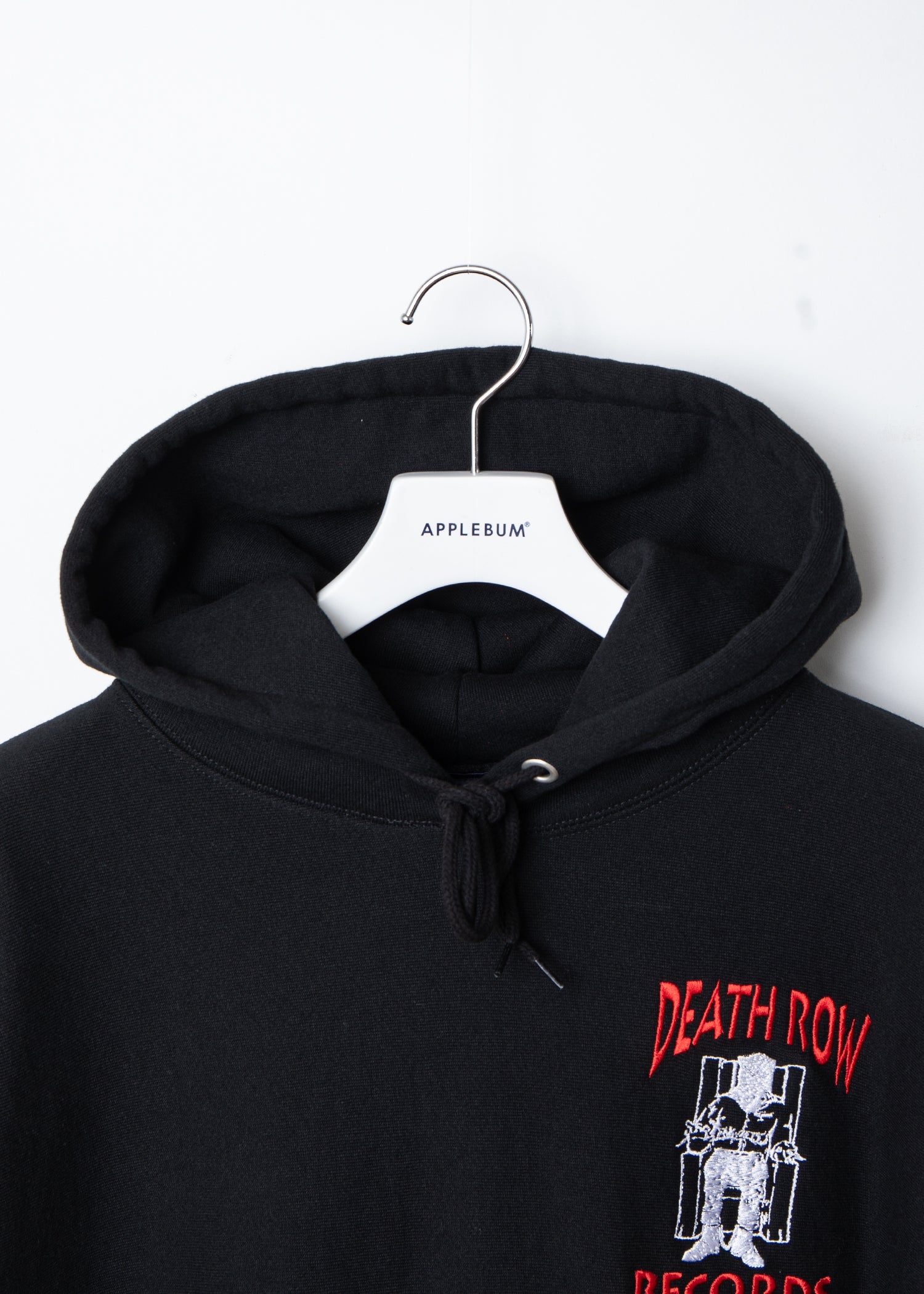 1990年代のヒップホップ黄金期を築いた伝説的レーベル Death Row Records を左胸に刺繍で落とし込んだスウェットパーカー。