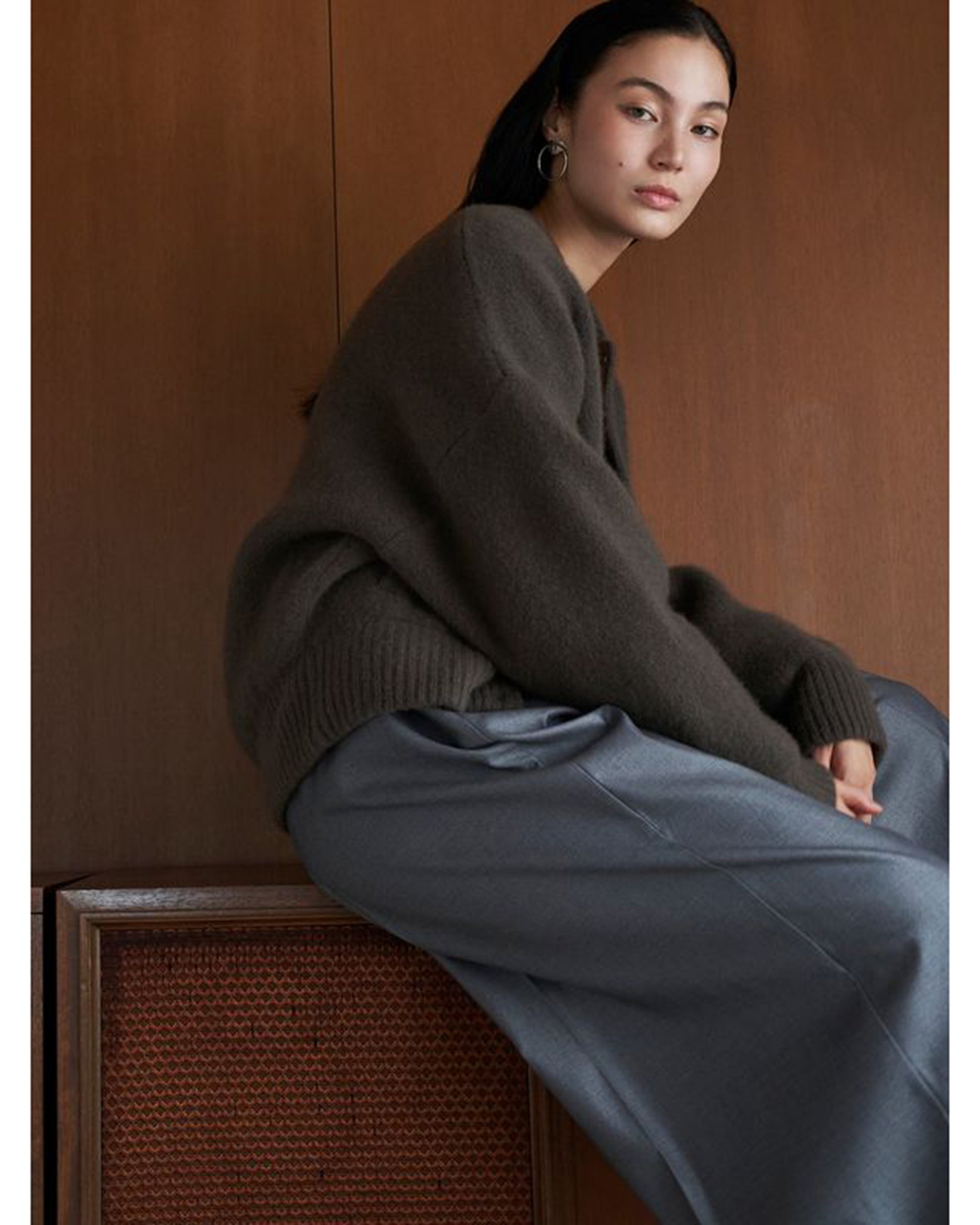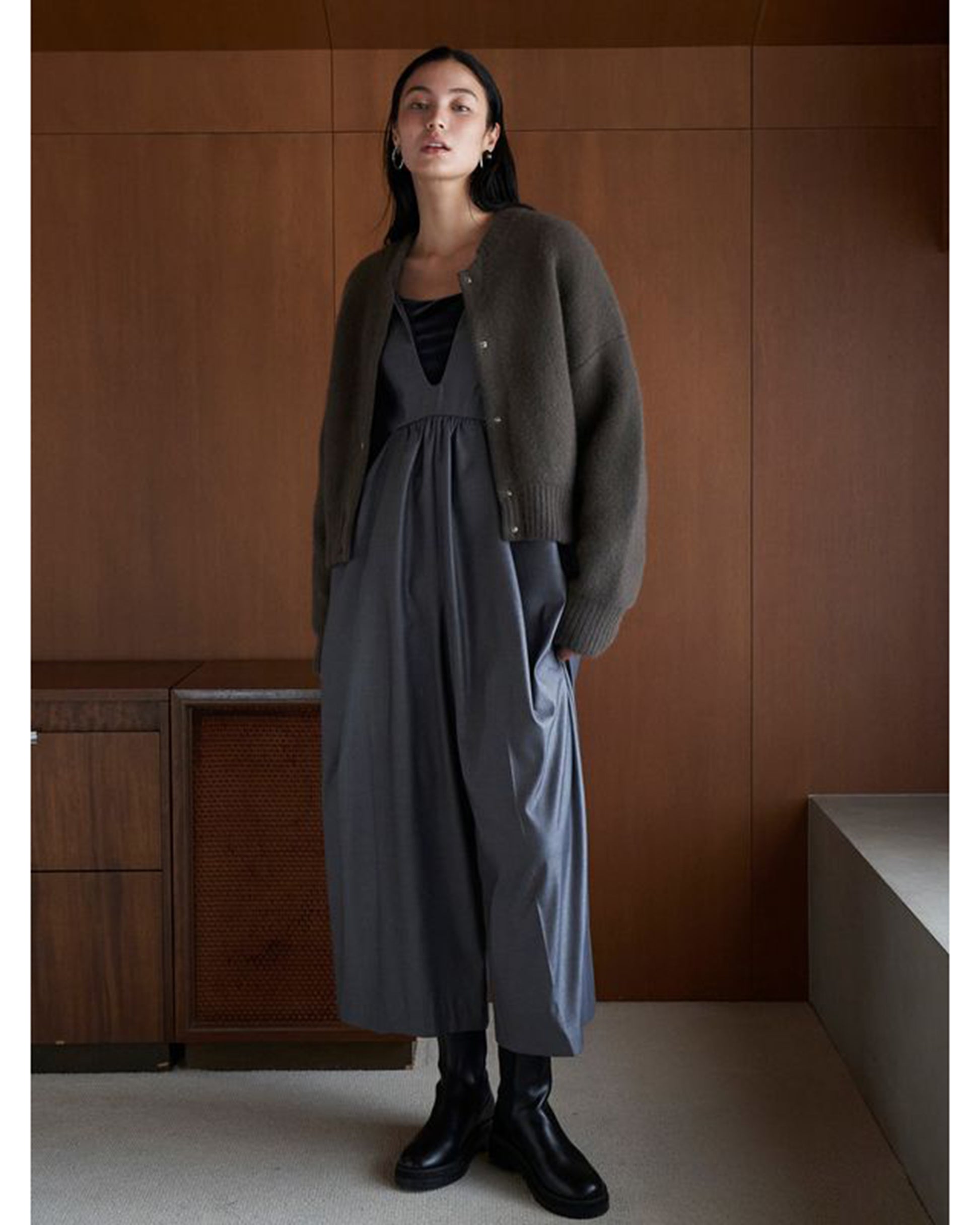 MATERIAL : 表側/毛(タヌキ)48% ナイロン27% 羊毛25% 裏側/ポリエステル100% 接結糸/ポリエステル100% リブ/毛(タヌキ)45% ナイロン31% 羊毛23% ポリウレタン1%