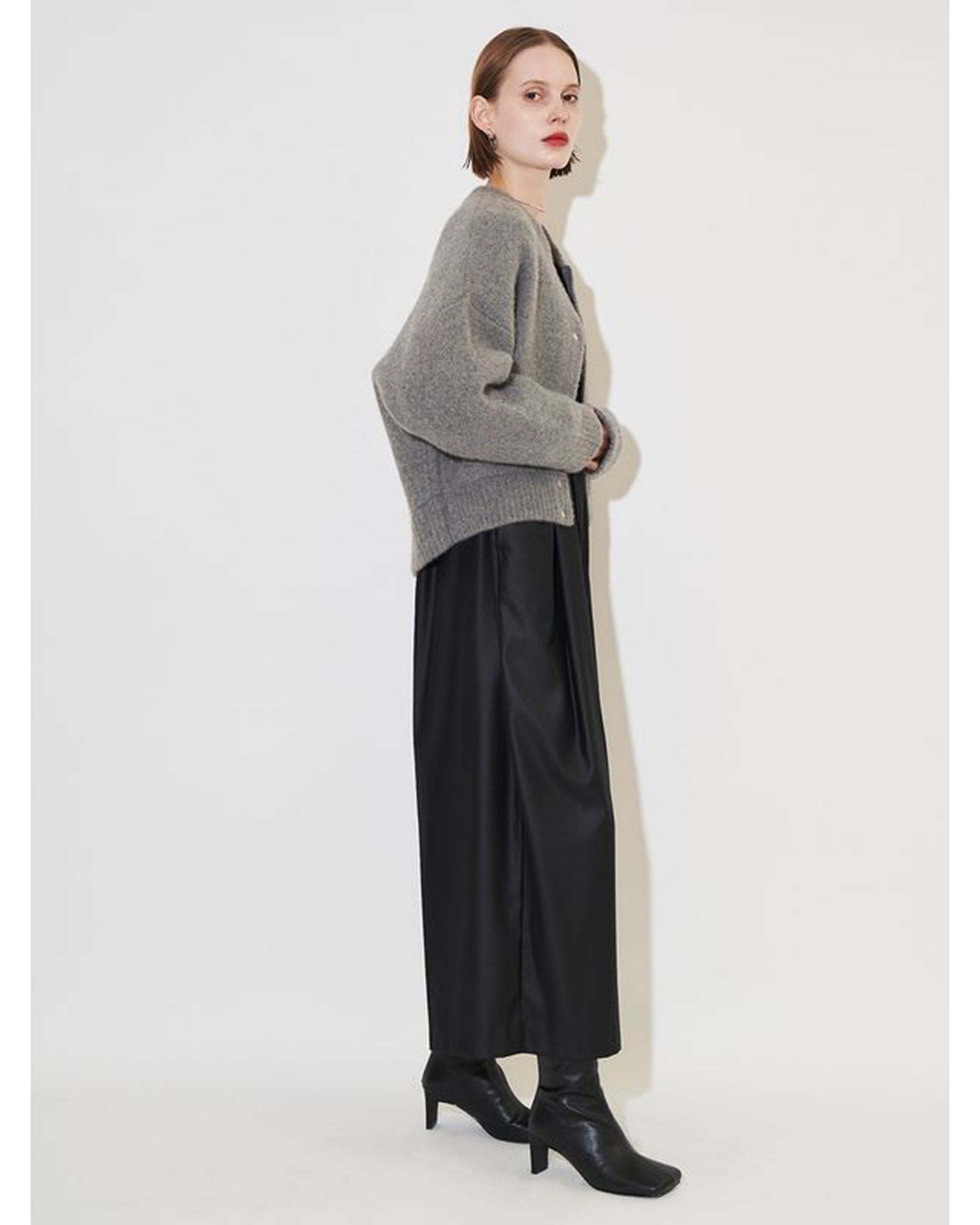 MATERIAL : 表側/毛(タヌキ)48% ナイロン27% 羊毛25% 裏側/ポリエステル100% 接結糸/ポリエステル100% リブ/毛(タヌキ)45% ナイロン31% 羊毛23% ポリウレタン1%