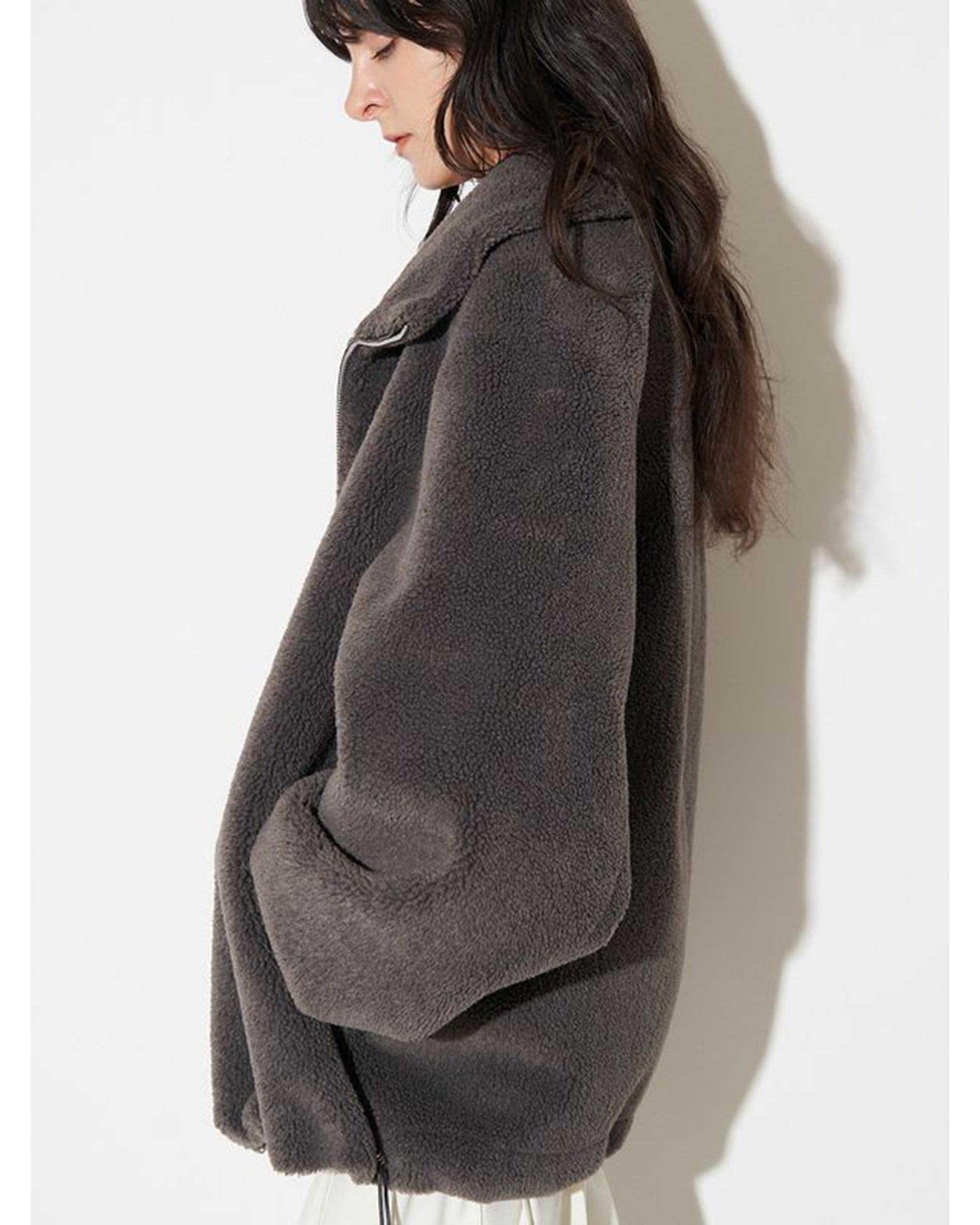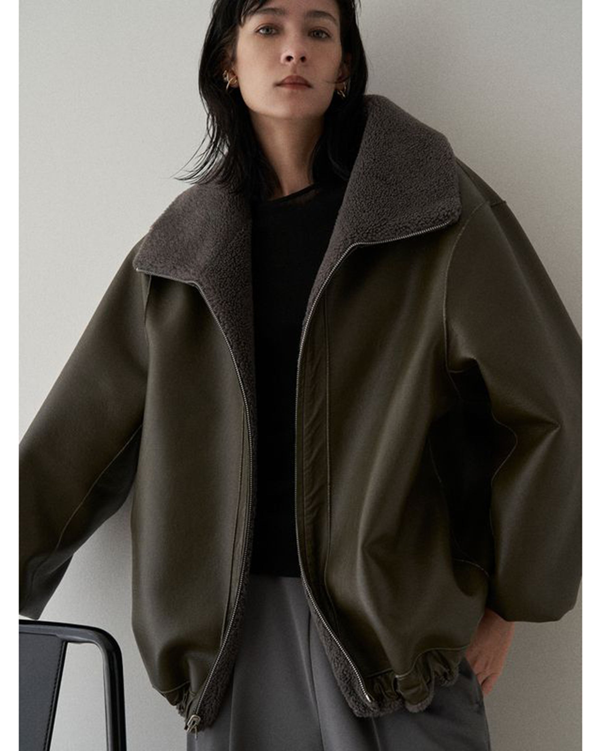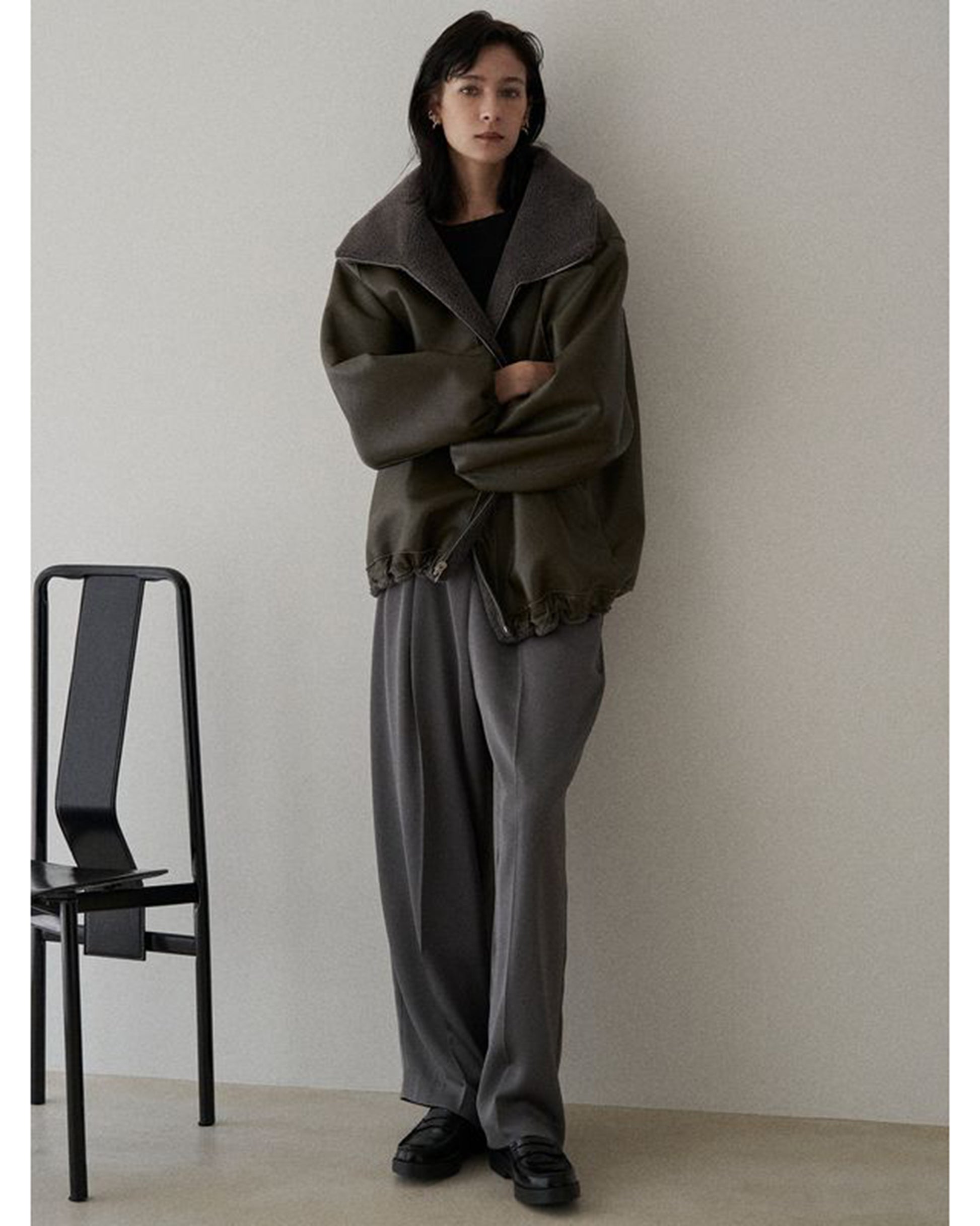 MATERIAL : 表側/ポリエステル91% 毛9% 地組織/ポリエステル100% 裏側/合成皮革
