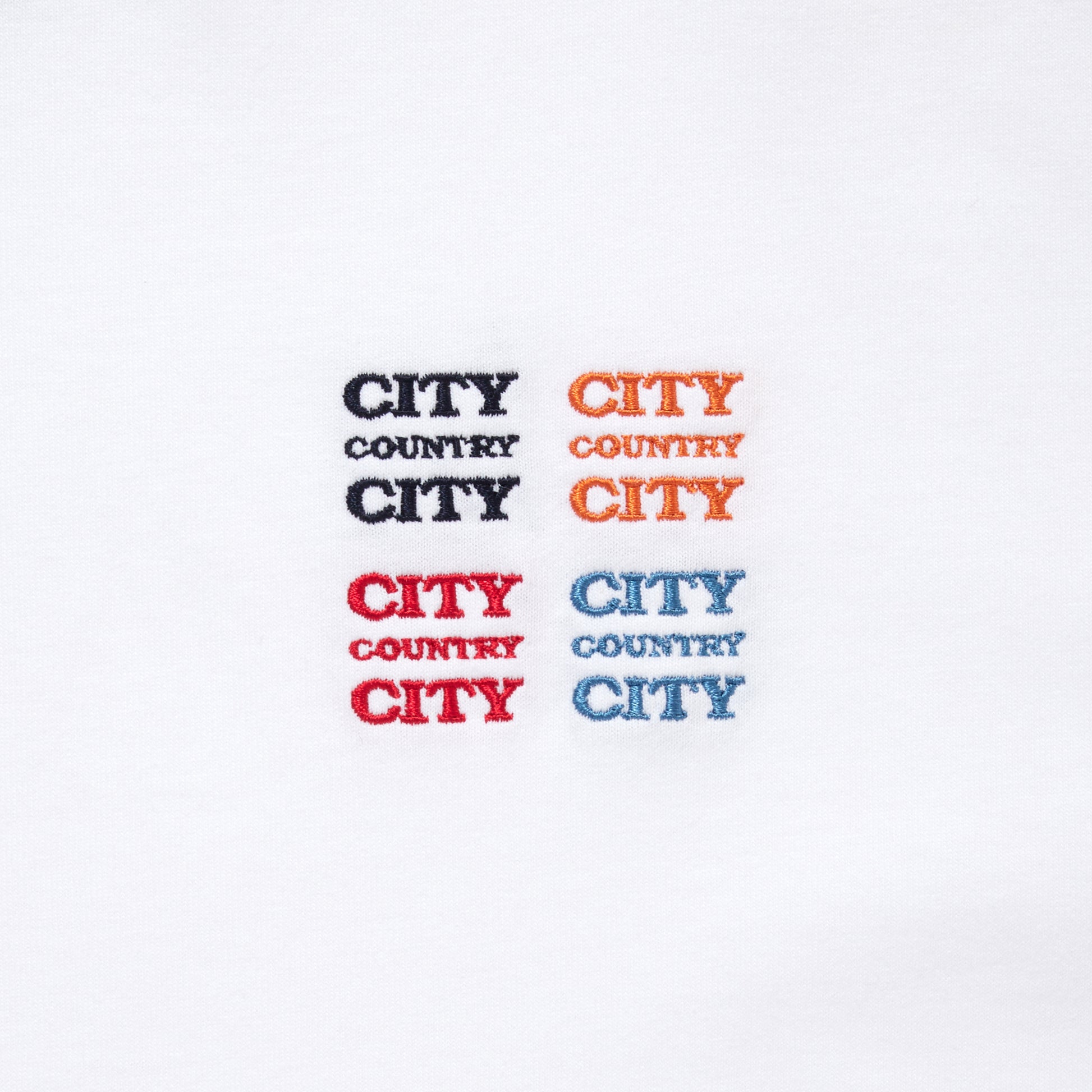 フロントのメインモチーフは、”音”を感じるカラー配色を アイコニックな"CITY COUNTRY CITY”ロゴを4つ組み合わせ 刺繍にて施したデザイン!