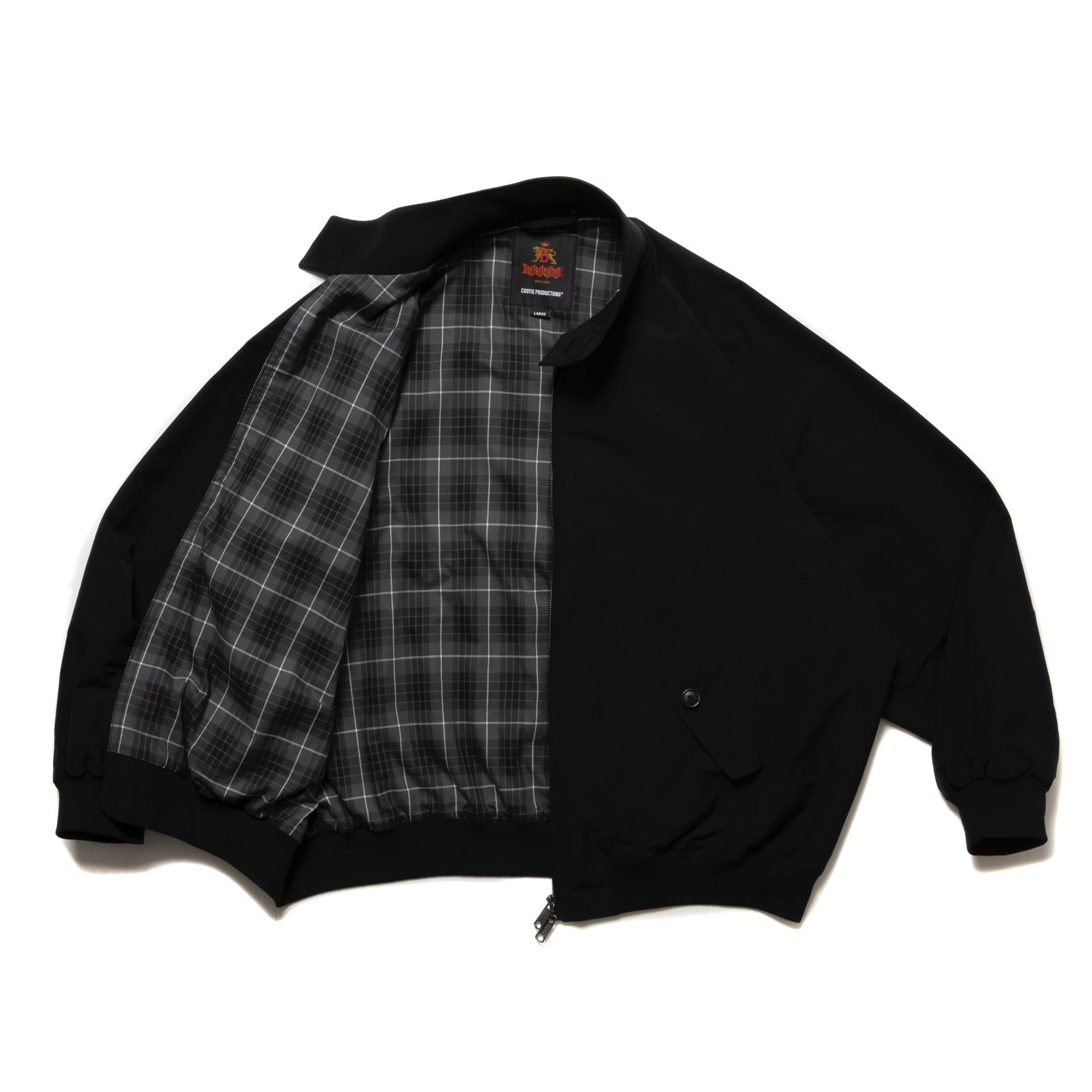撥水性、透湿性に優れたバラクータクロスをシェルに使用。裏地はBARACUTAのアイコニックな特徴である、「フレイザータータン」の生地を無彩色で表現。 BARACUTAのアイコンであるG9ハリントンジャケットの正統なディティールを残しつつオリジナルワイドシルエットで作成。