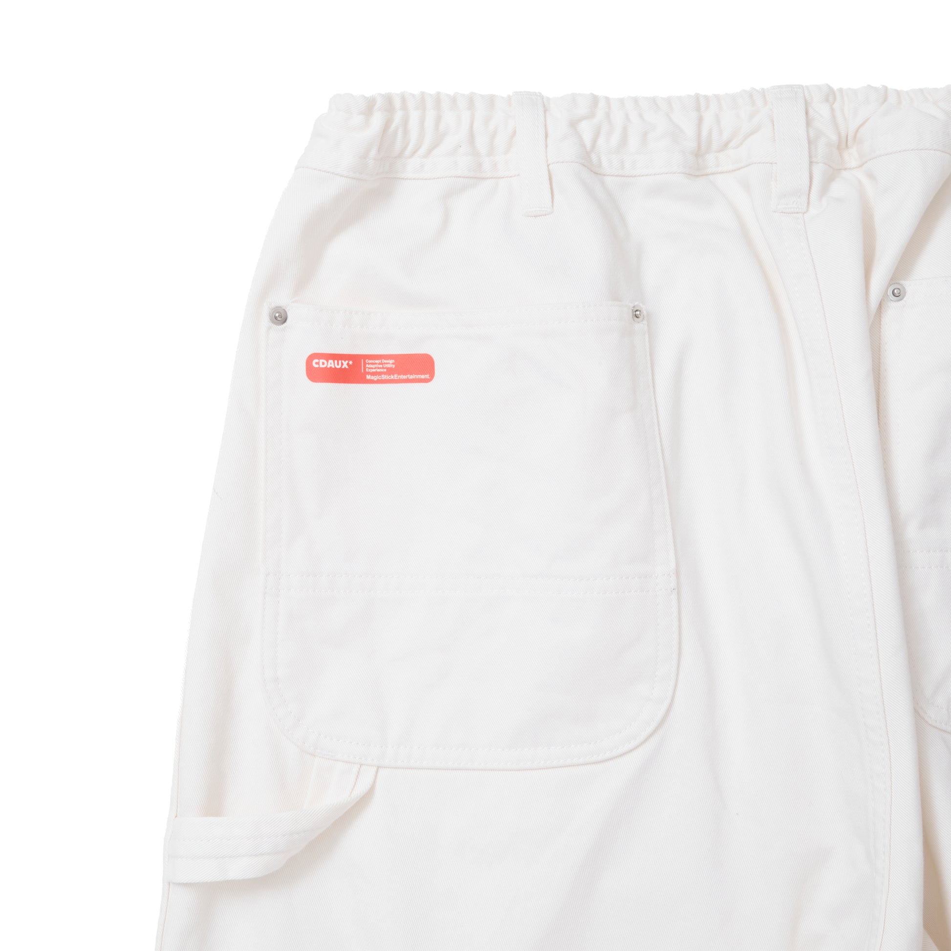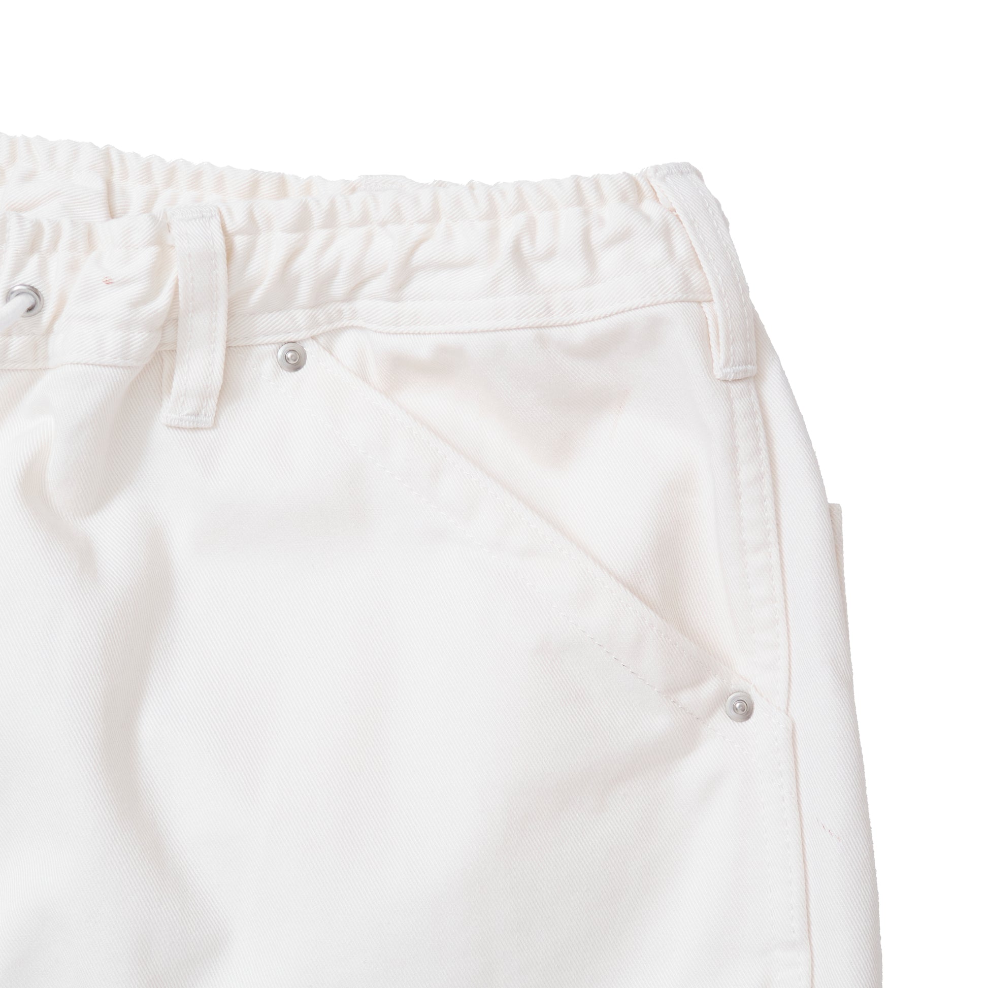 ツールポケットやハンマーループなど、ペインターパンツの要素をすべて残しつつ、ウエストにはエラスティックバンドとスピンドルを組み合わせたイージー仕様にアップデート。