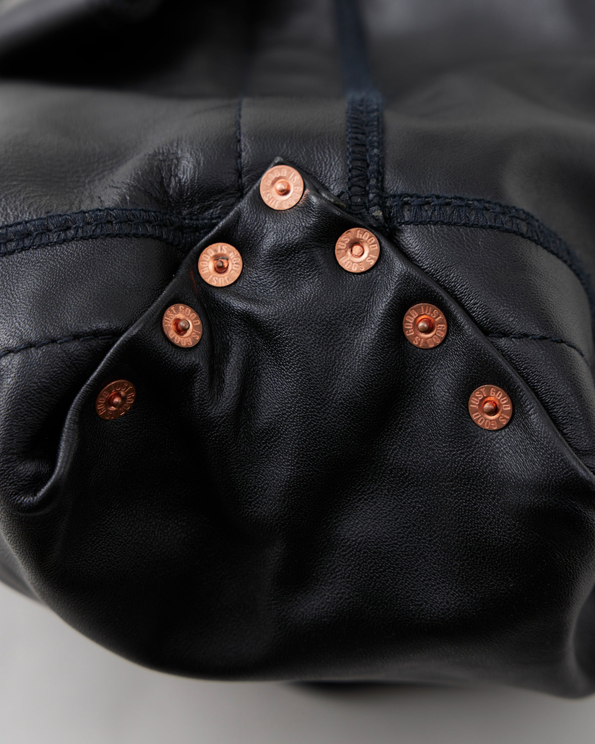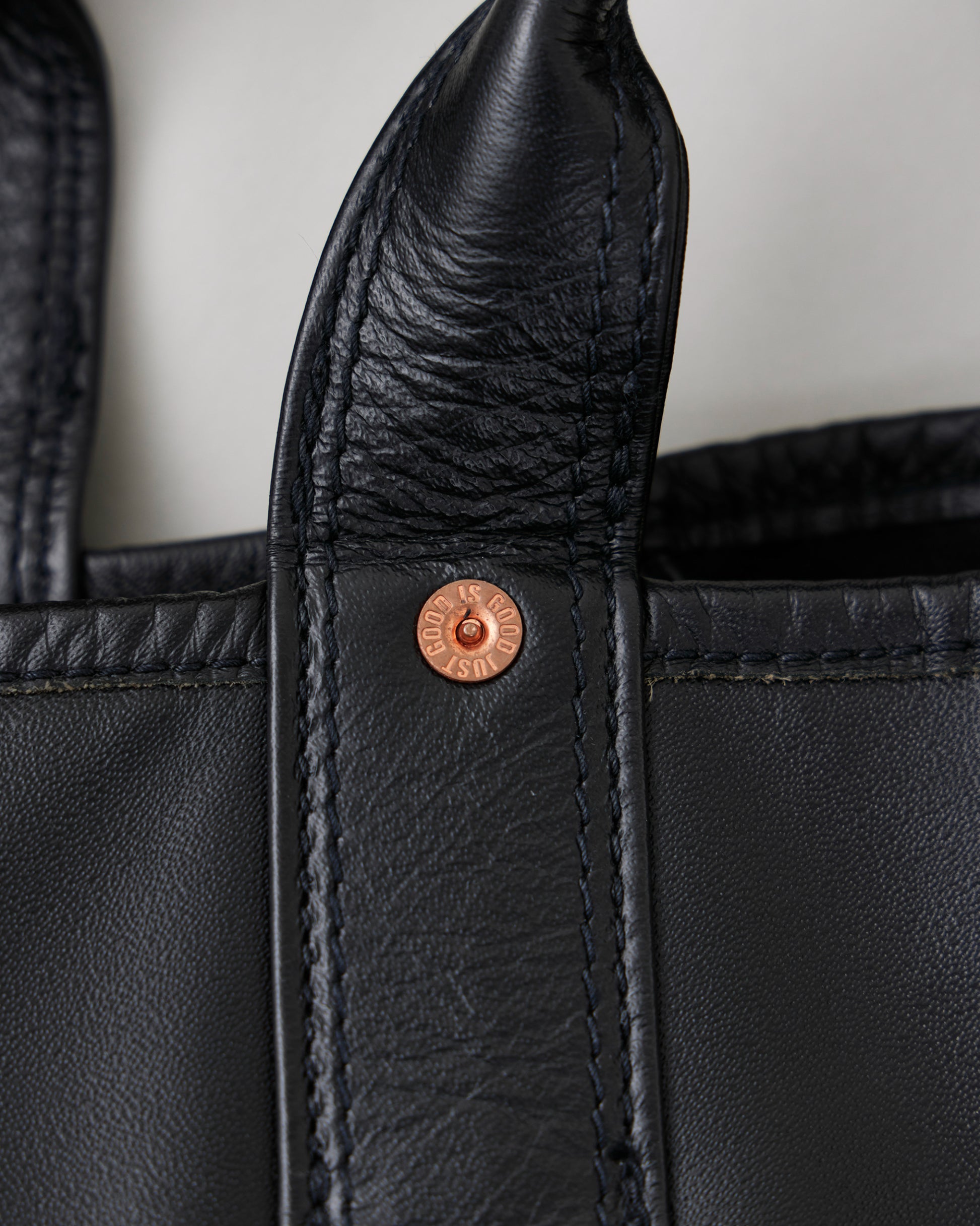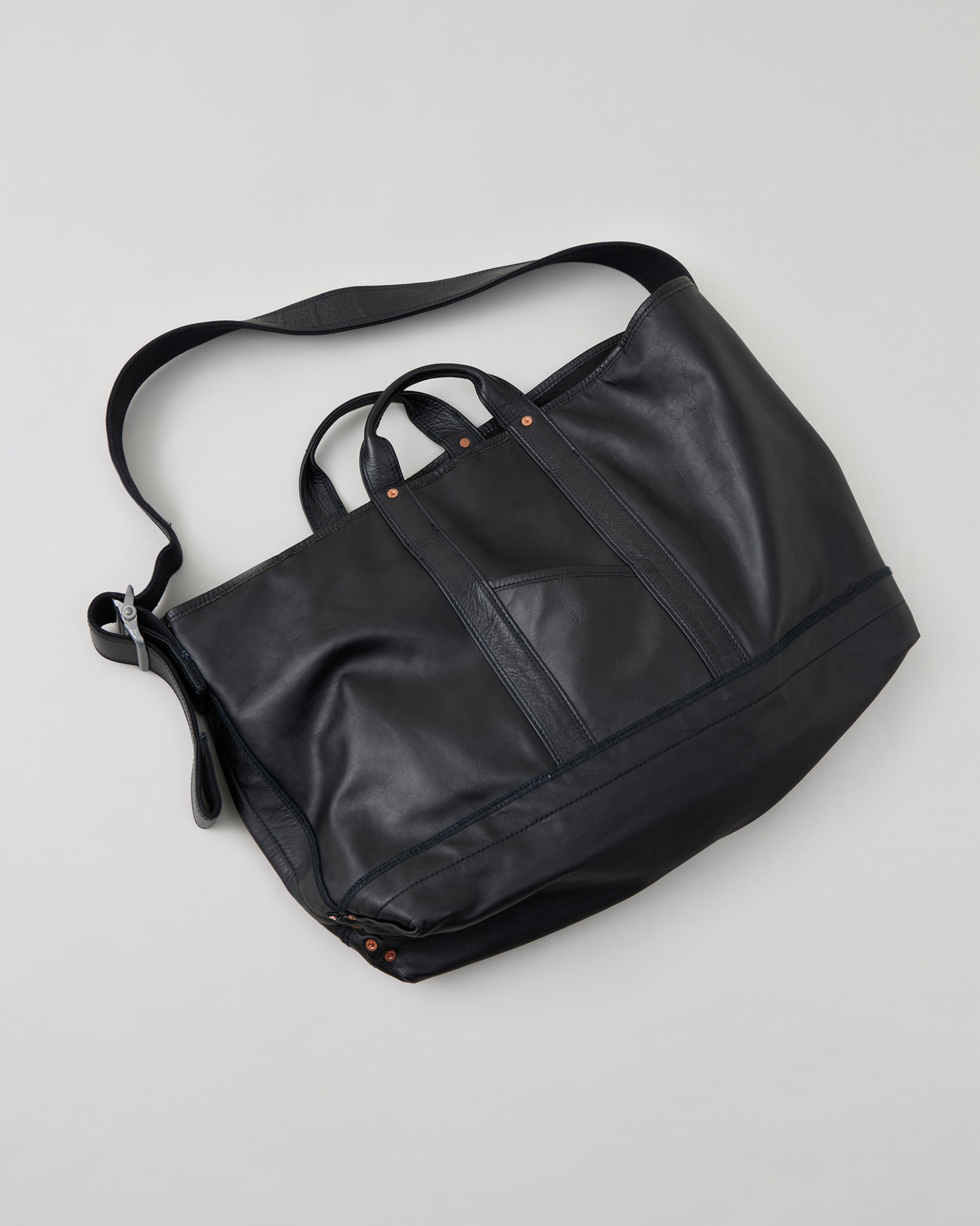 1920s~1950sに登場した国のツールバッグからインスピレーションを得てデザインしたショルダーストラップ付きトートバッグ。素材には無骨な表情のホースレザーを採用。マチの折り込みのリベット留めなど当時の面影を残しながらも、細部のディテールを現代的にアップデートしています。