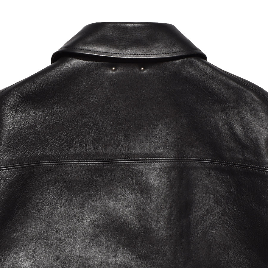 レザープロダクトに特化した熟練の職人によって、既に着込まれたかの様な加工が施され、はじめからヴィンテージの様な雰囲気を醸し出しているミドルレングスのカーコート。