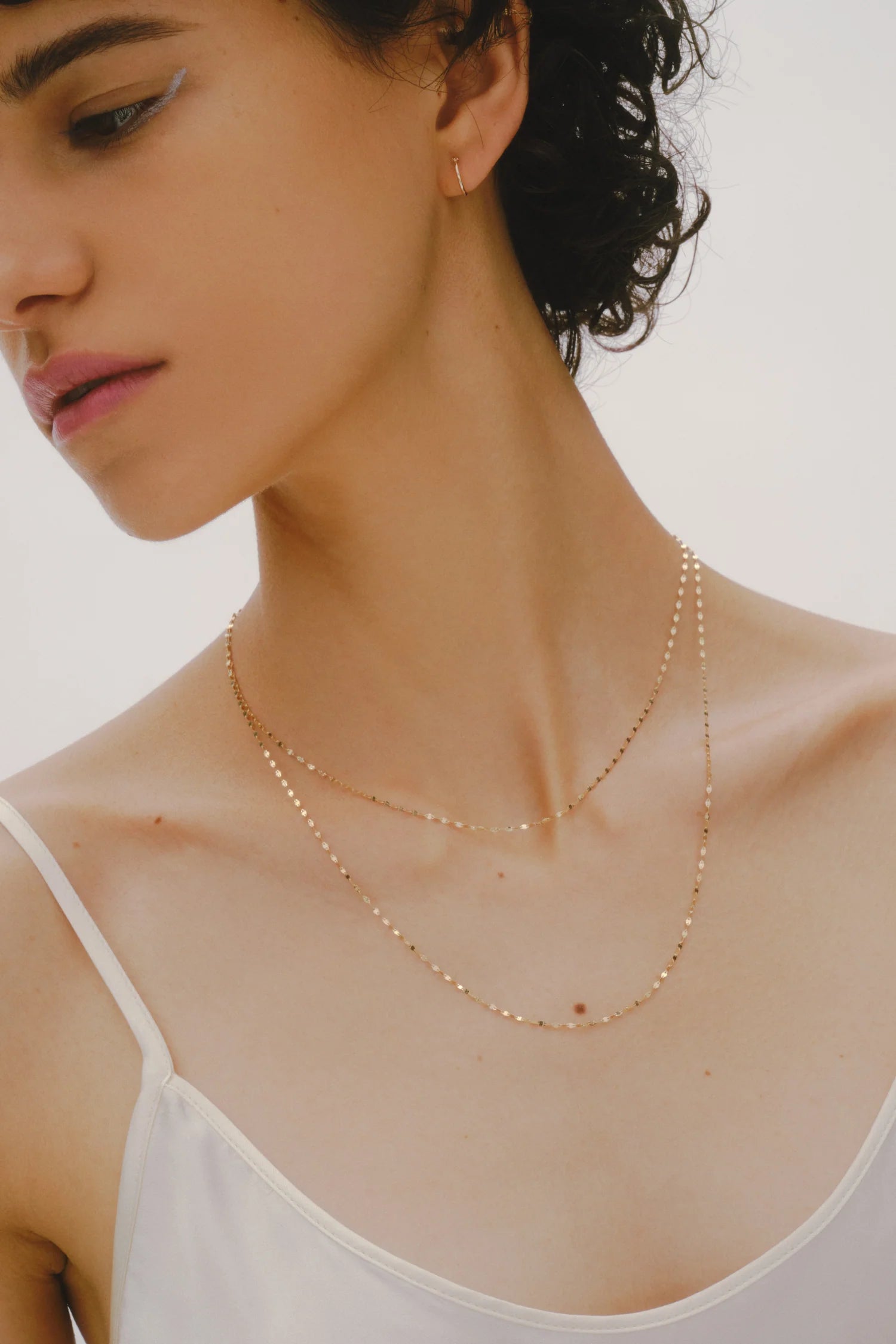素肌とゴールドとの印象的なコントラストによって、センシュアルな魅力が引き立ちます。