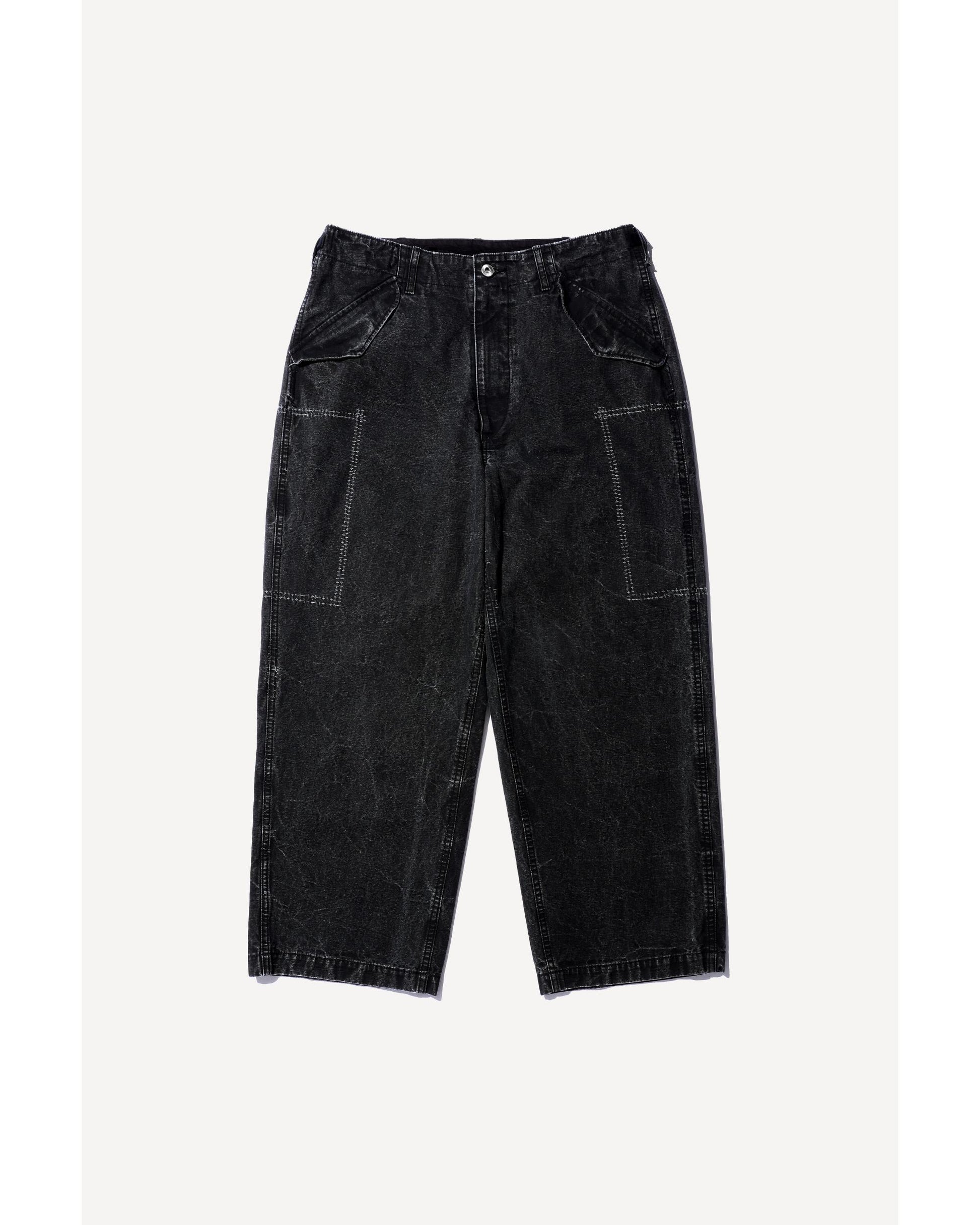 【加工】特殊な加工により生地にランダムなスレやアタリを出し、製品の迫力を出した。デニムの様に履きこむ事で経年変化する。