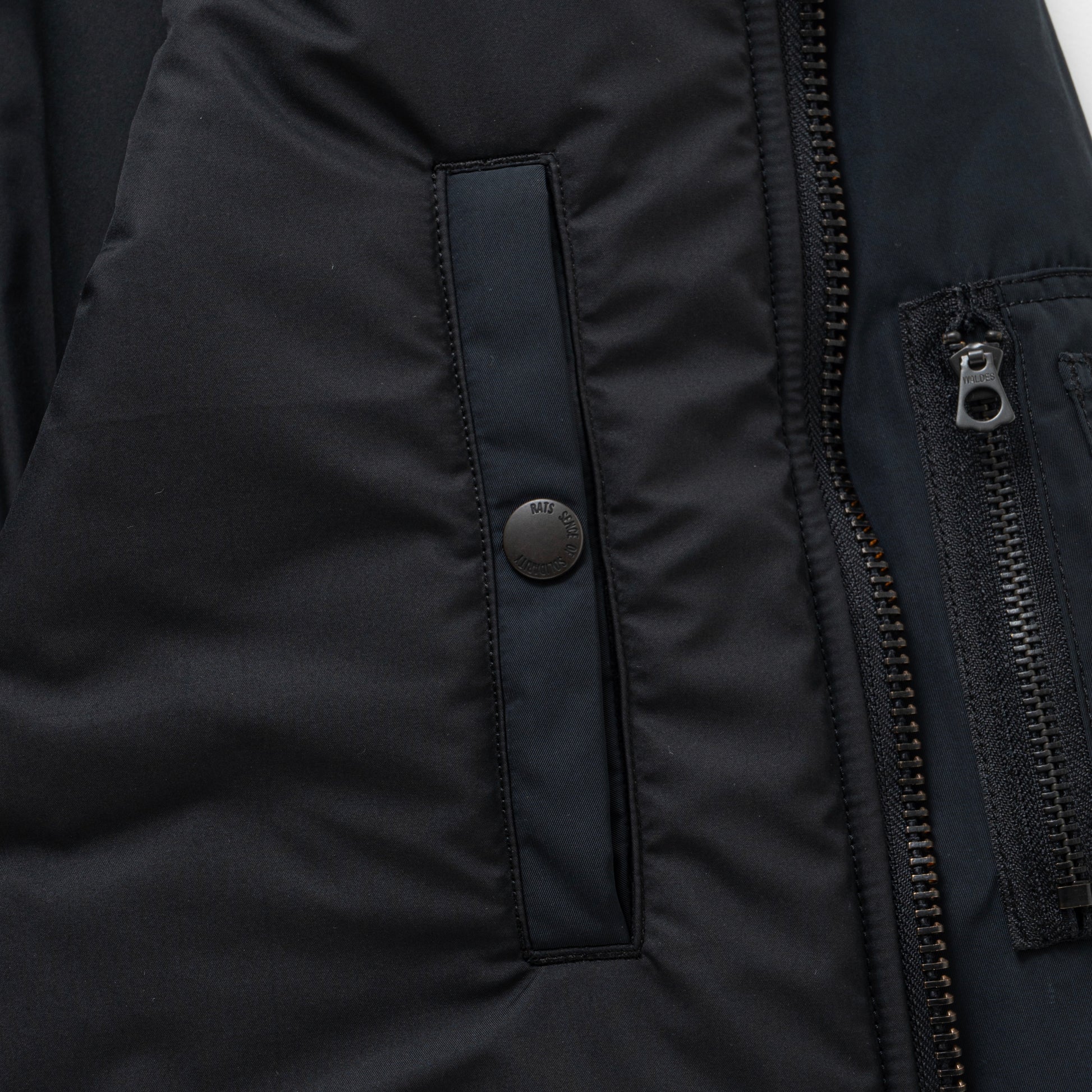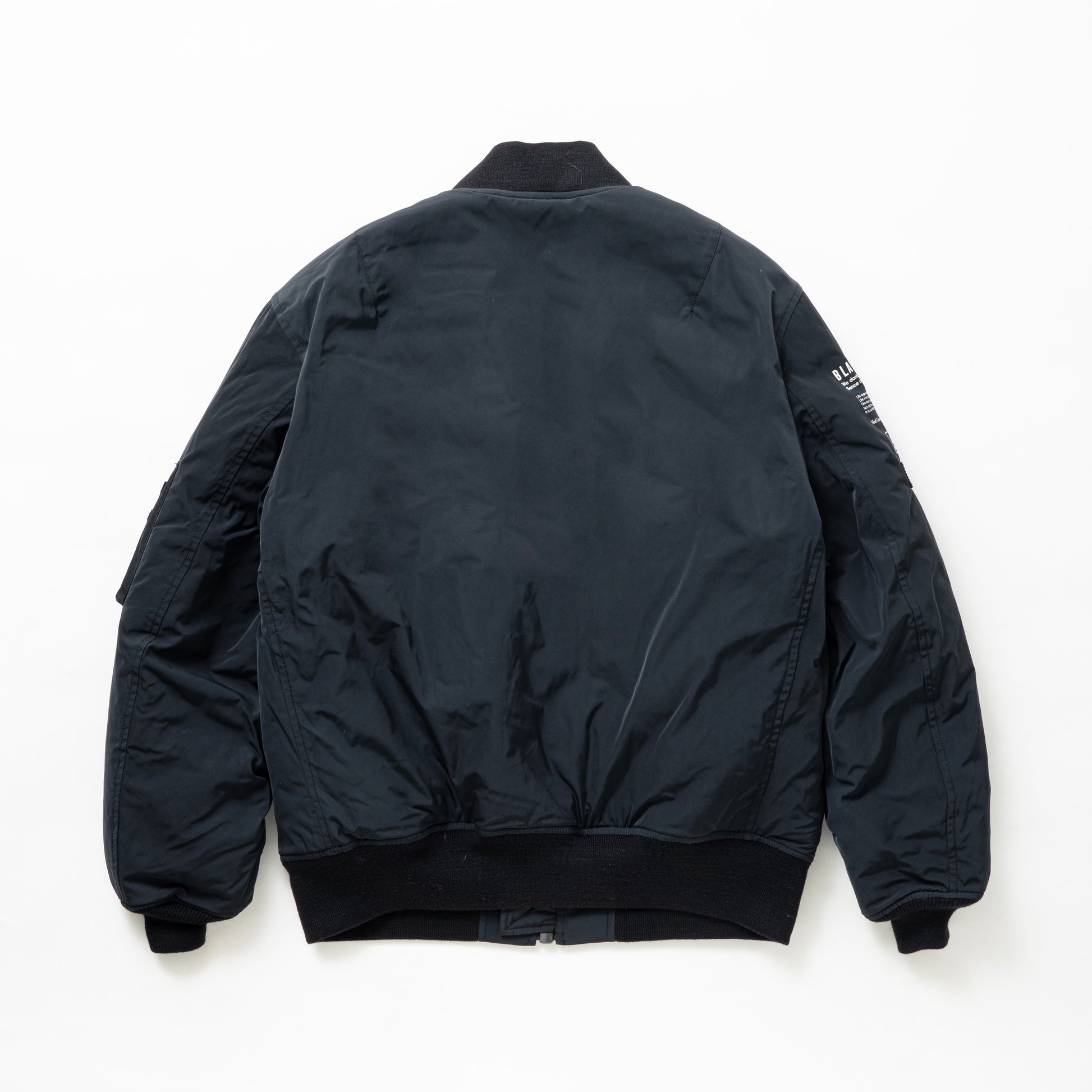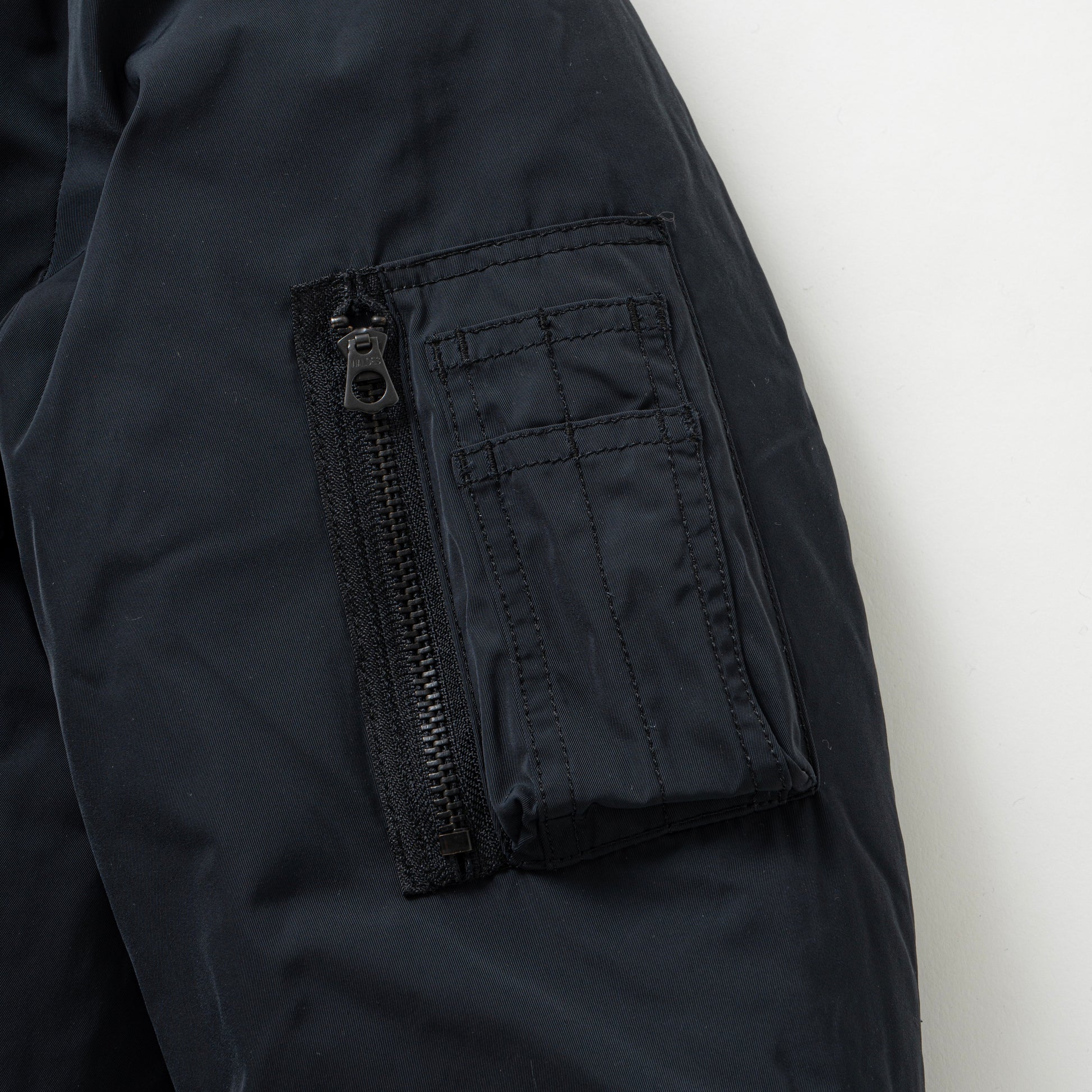 マットな質感、撥水性に富むオリジナルで作成したポリエステル生地を使用したMA-1ジャケット。