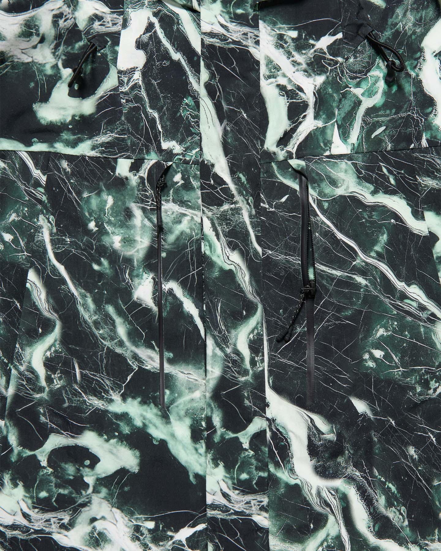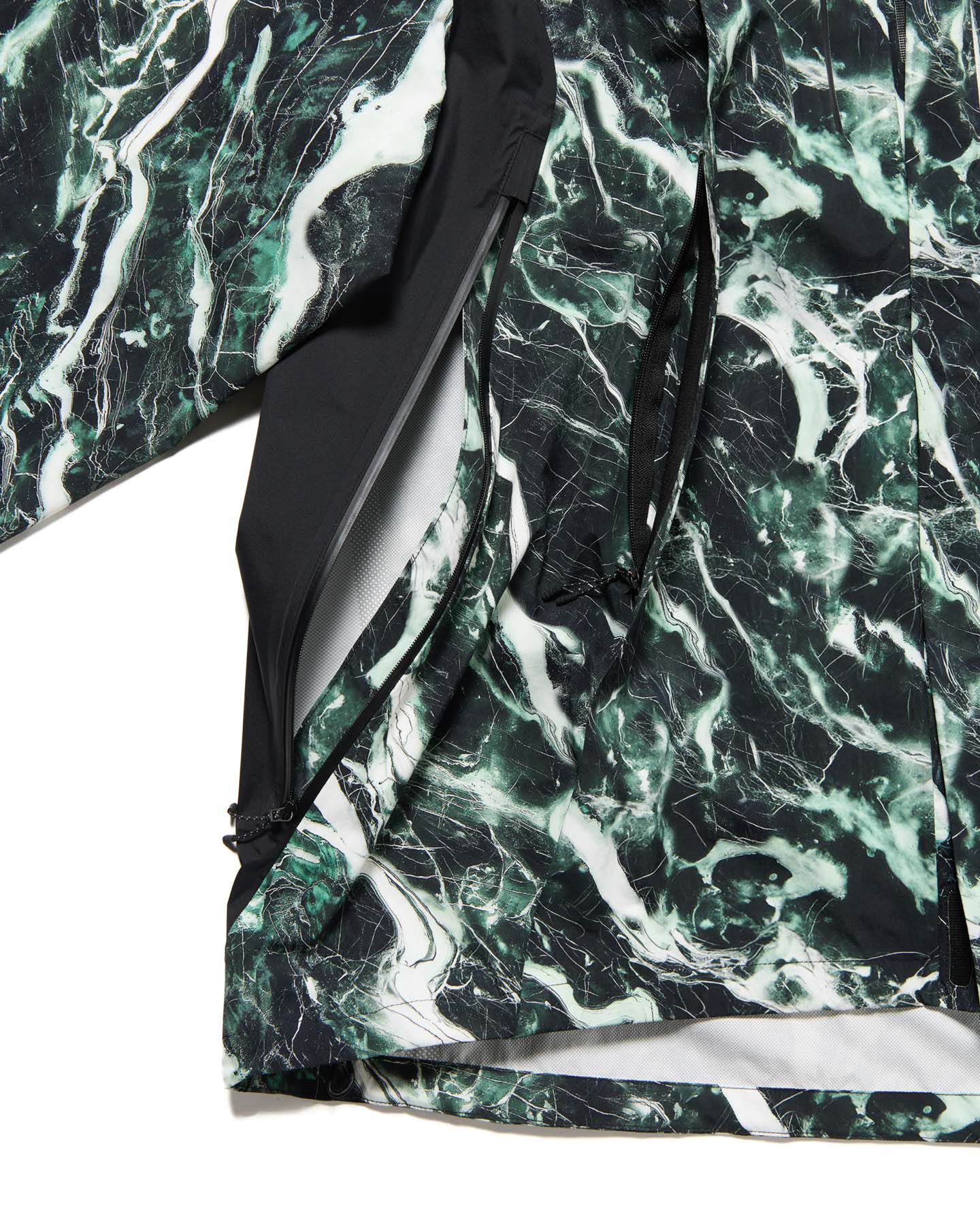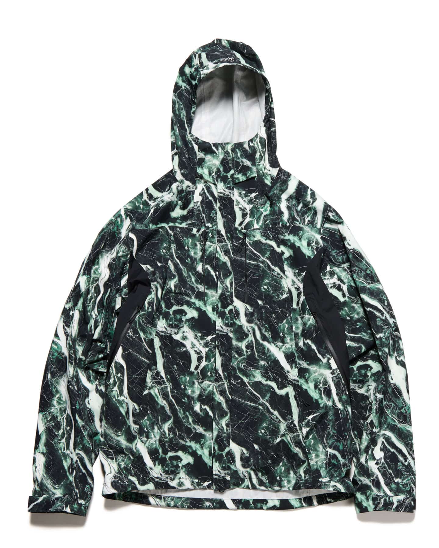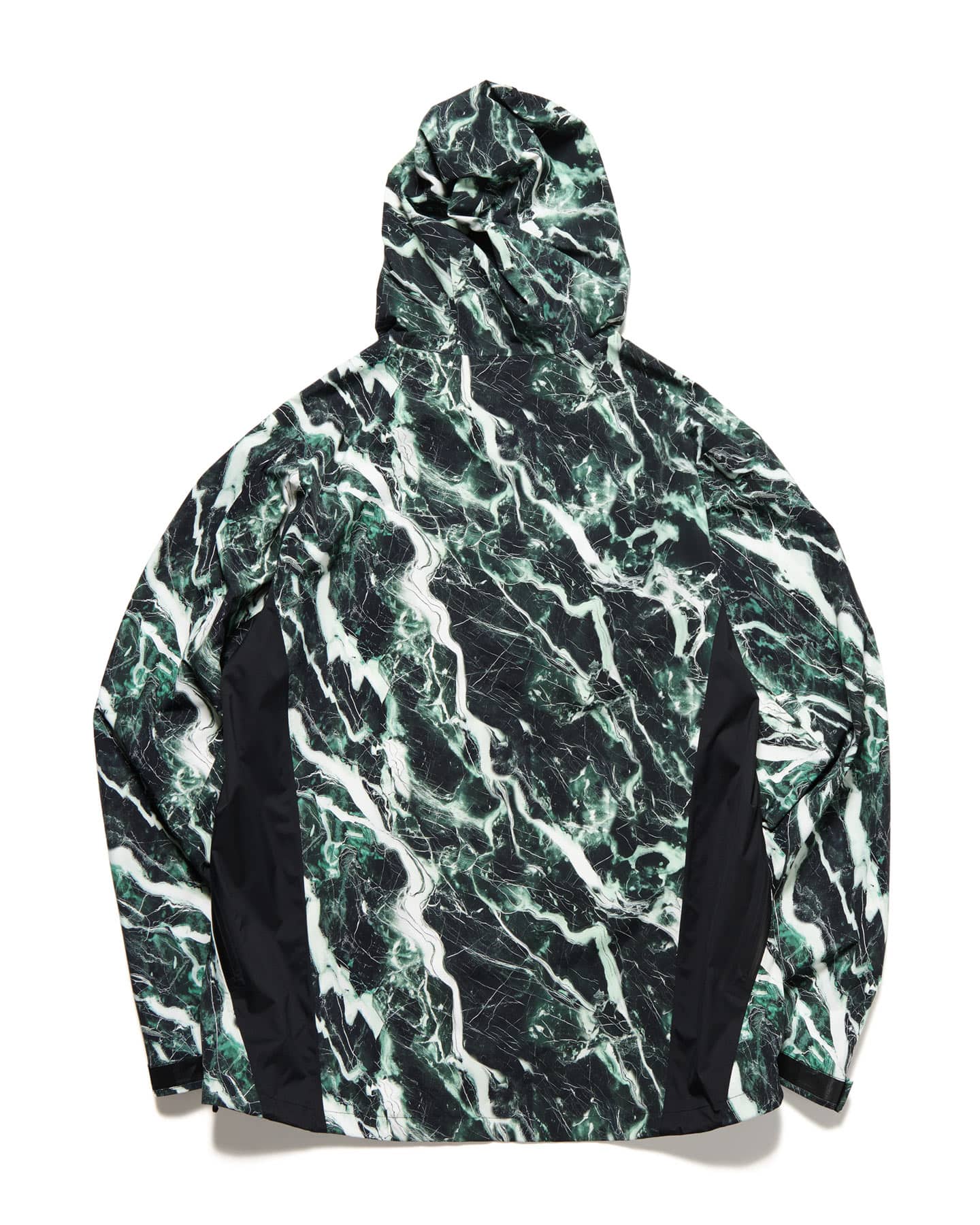 大理石=マーブル柄を、それぞれ防水透湿性に優れた2.5層のナイロンタフタに施したインパクトあふれるマウンテンパーカ。