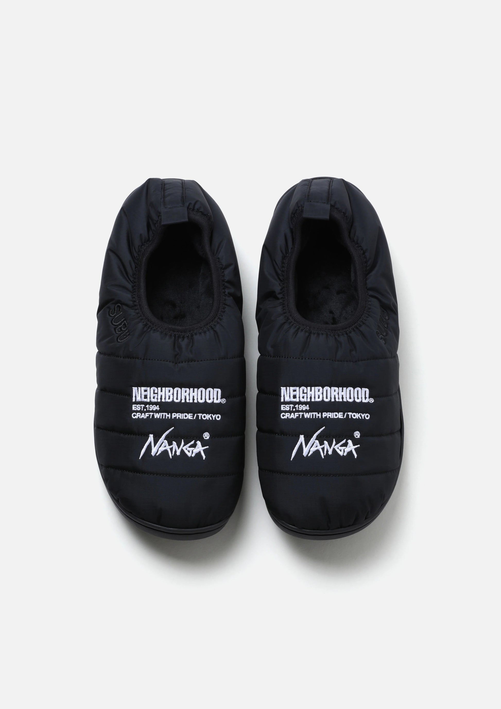 アッパーにNANGA独自のファブリック"オーロラテックス®"を採用した、SUBUの新しいルームシューズVAMP。アッパーにロゴ刺繍をを配置。NANGA、SUBUとのジョイントワークアイテム。