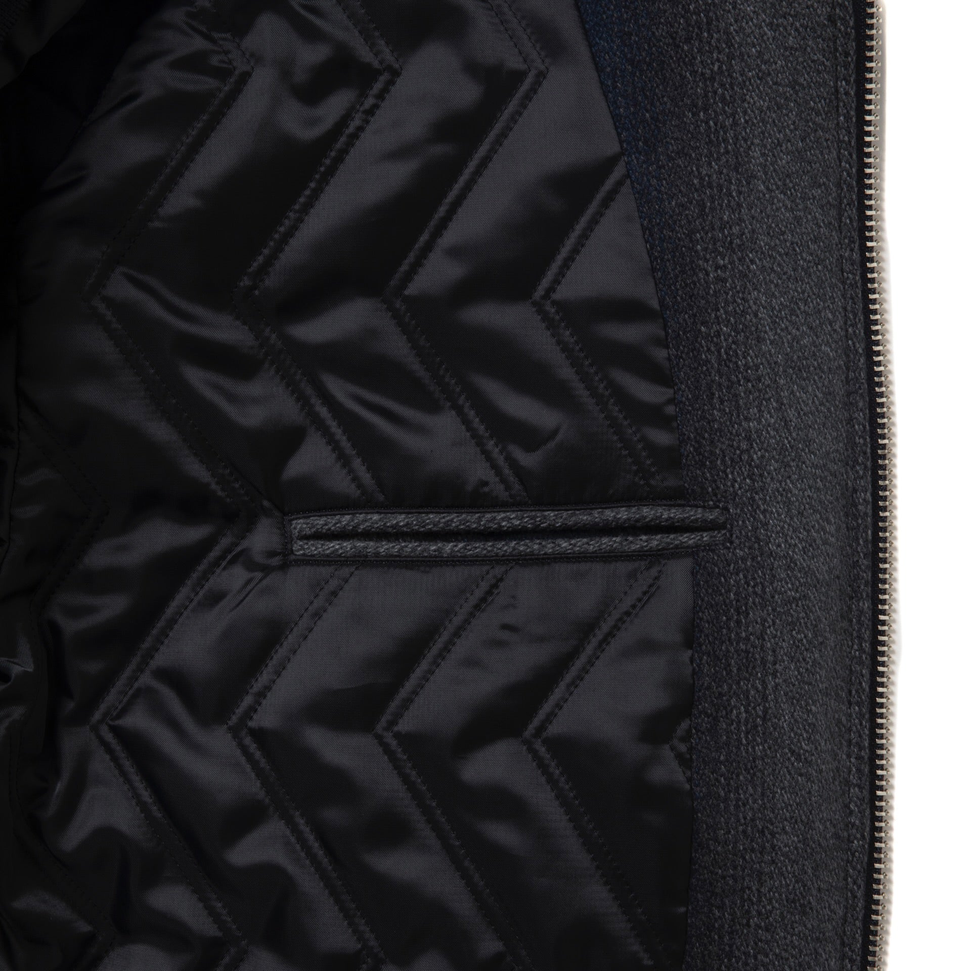 Fabric : Shell : 97% Wool , 3% Nylon / Fill : 100% Polyester / Lining : 100% Polyester