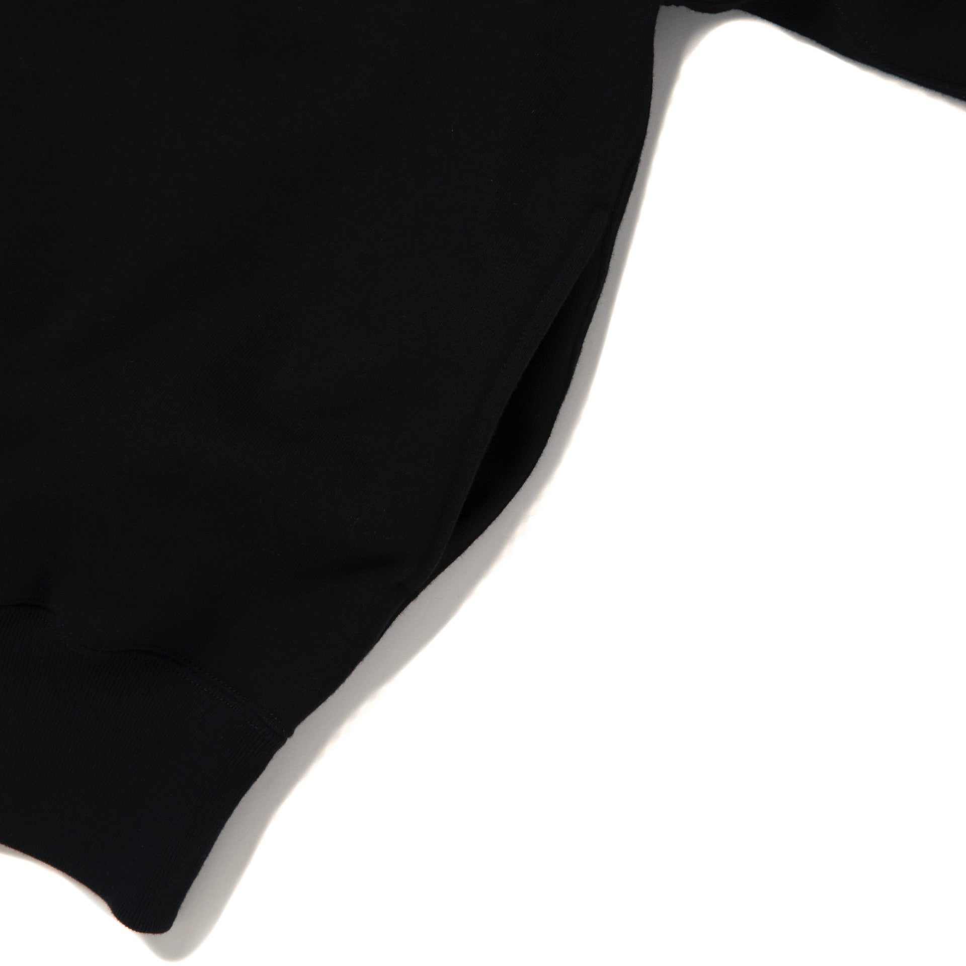ソフトな風合いを持つオリジナルの度詰め裏毛を仕様。脇接ぎにスリットポケットが付く。丸みのあるワイドシルエット。