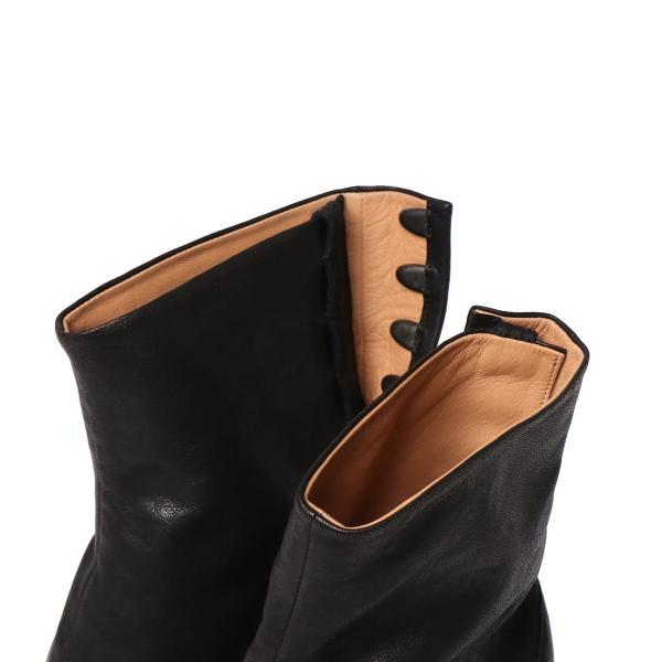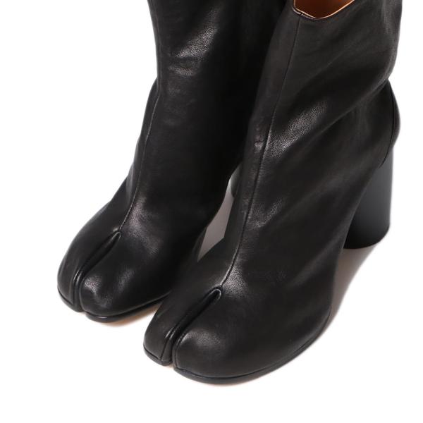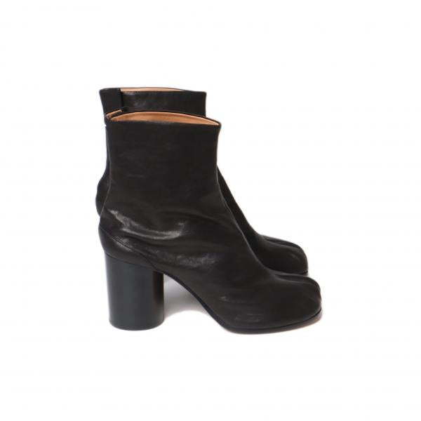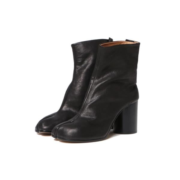 やわらかいナッパレザー製の「タビ」ブーツです。8cmのシリンダーヒールが特徴です。「タビ」シューズは、その名前の由来である15世紀の日本の伝統的な靴下(足袋)から着想を得たつま先が分かれたスプリットトゥのシルエットが特徴のスタイルです。アバンギャルドで法則や規則に囚われないメゾン マルジェラのクリエイティブなスピリットを反映した「タビ」は、メゾンのヘリテージとして、伝統を受け継ぎながら時代とともに進化し続けています。
