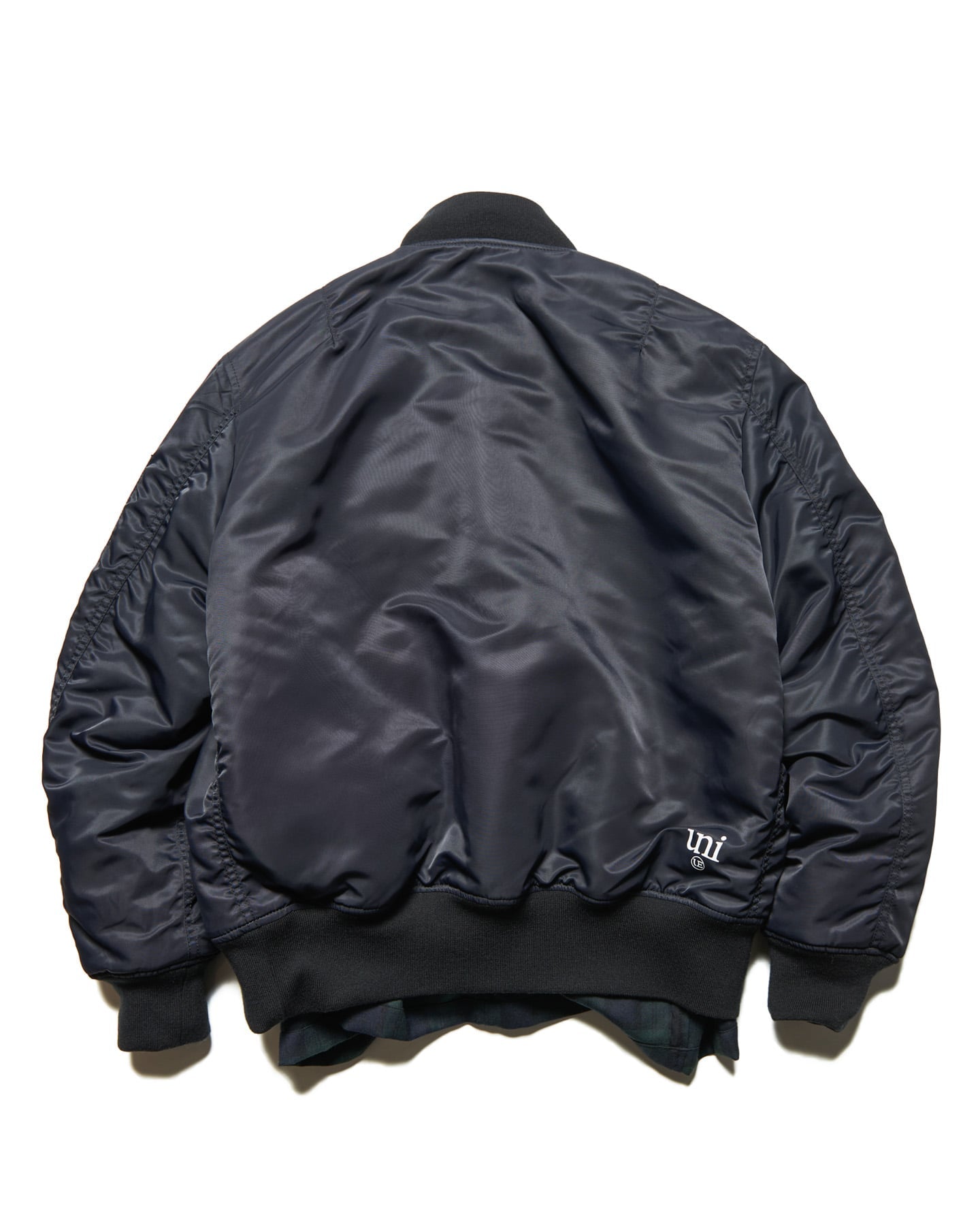 MA-1面はハリと光沢を併せ持った高密度の撥水リサイクルナイロン、ブラックウォッチ柄のジャケット面はウール50%・ポリエステル50%のサキソニー素材を採用。1着で対照的なスタイルを構築できる、まさにUEのアイデンティティを象徴するアイテムです。