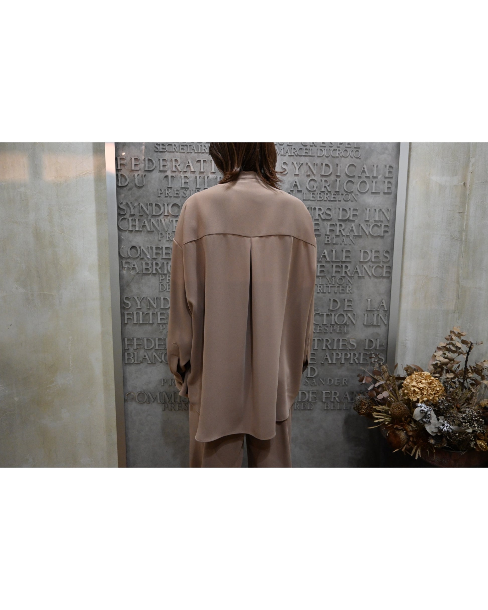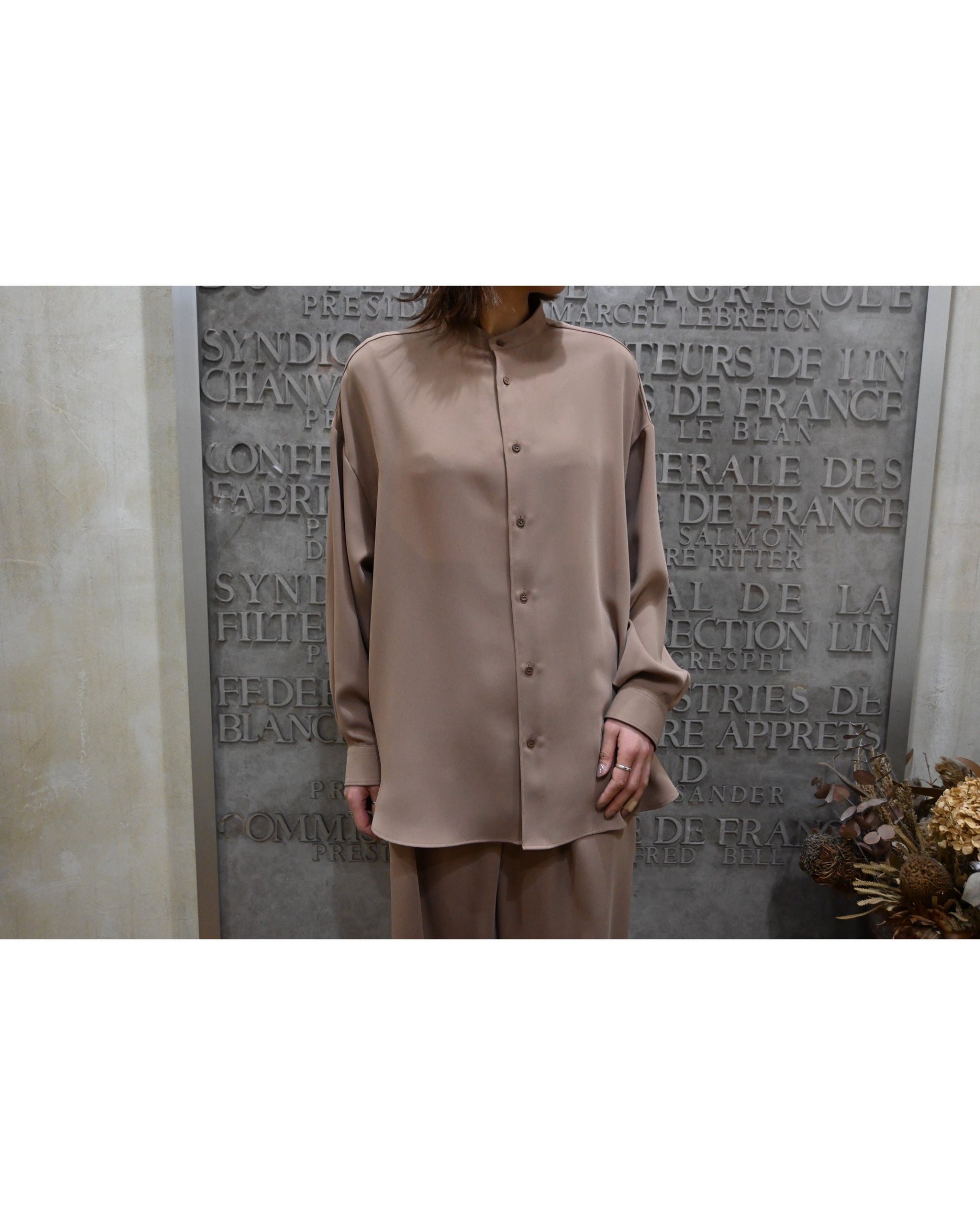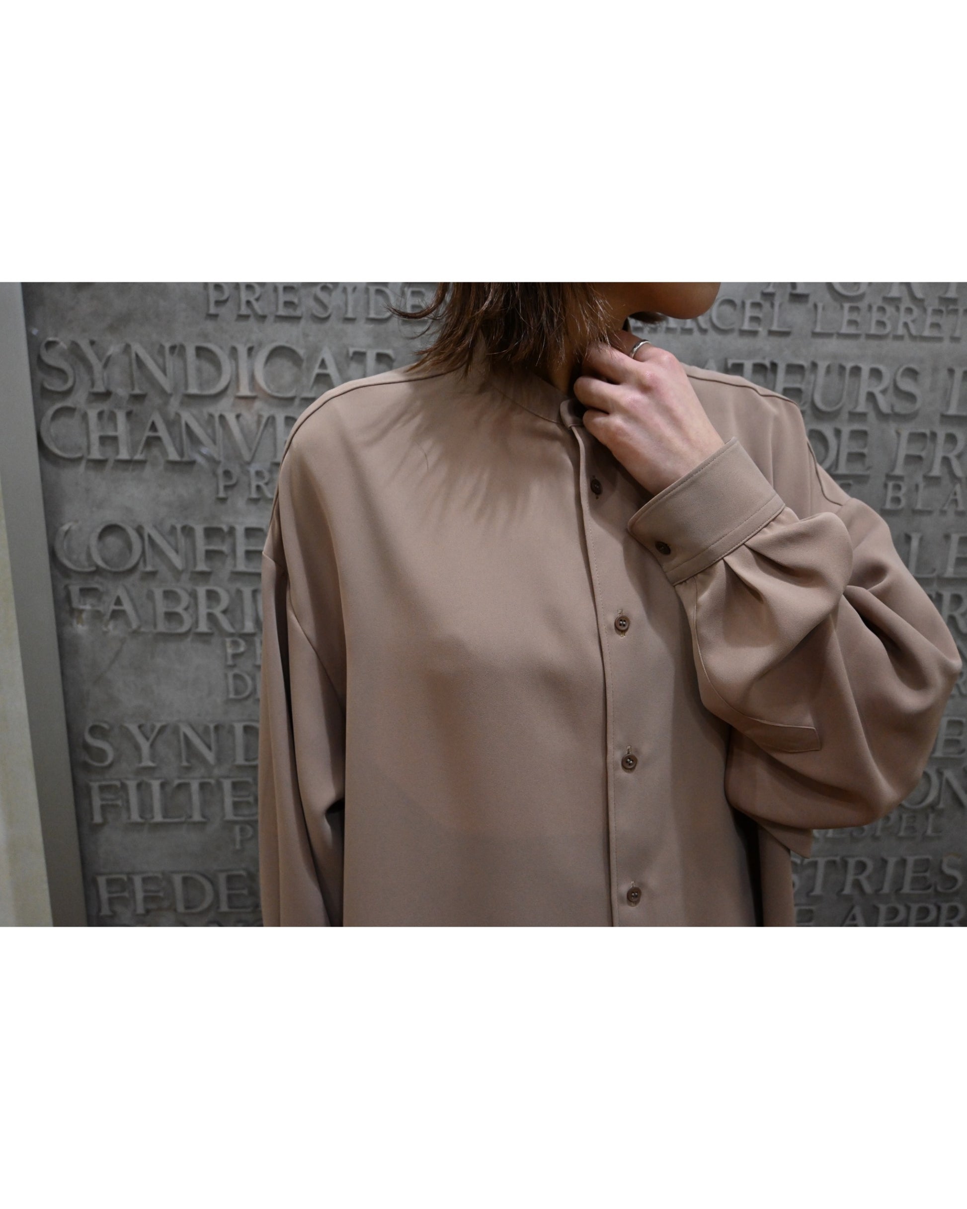 Satin Oversized Band Collar Shirt
